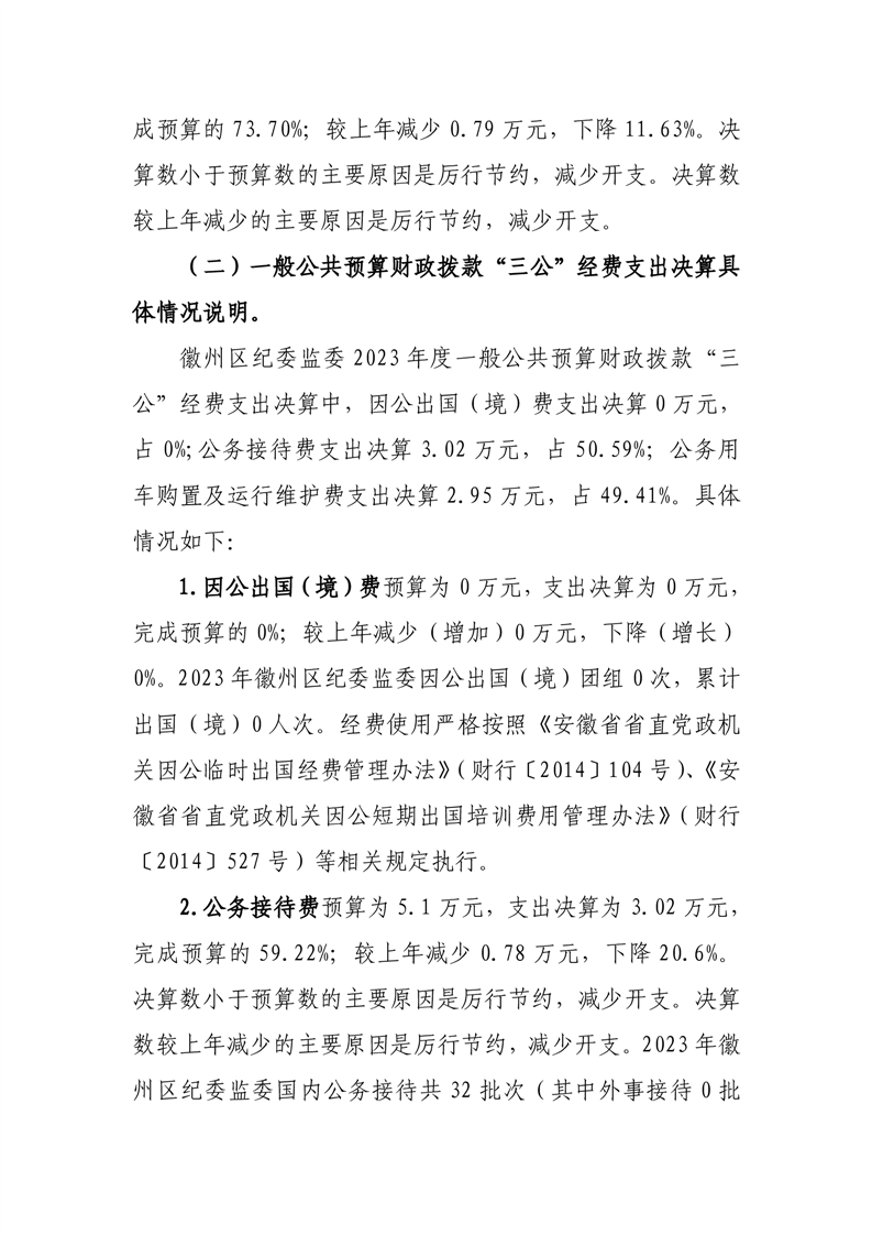 徽州区纪委监委2023年度一般公共预算财政拨款“三公”经费支出决算情况说明